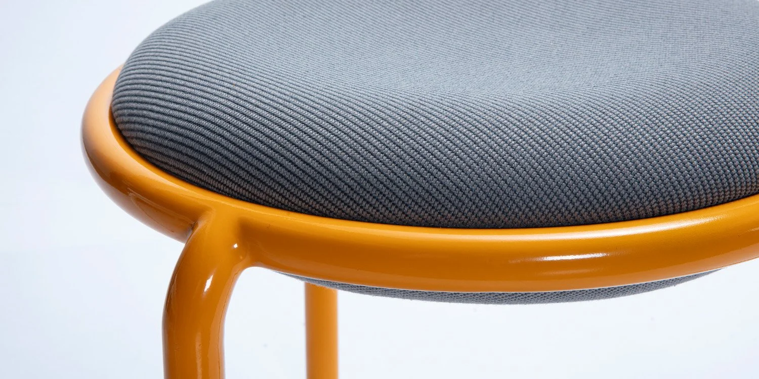 A friendly family of lightweight, over-sized stacking stools with simple snap-on upholstery options.
